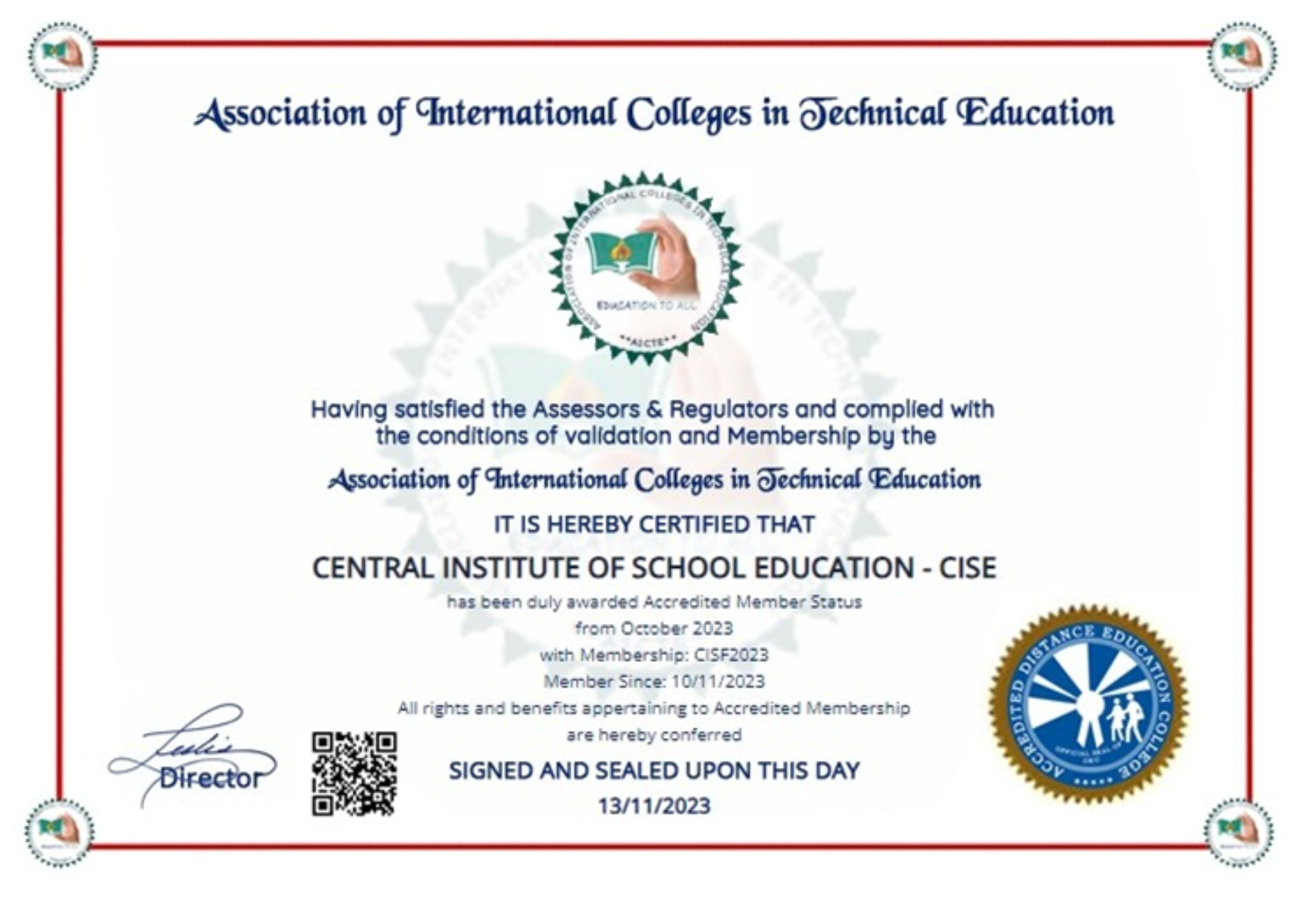 Association of International Colleges in Technical Education (AICTE), is responsible for the promotion and coordination of the Open and Distance Learning system in the country.